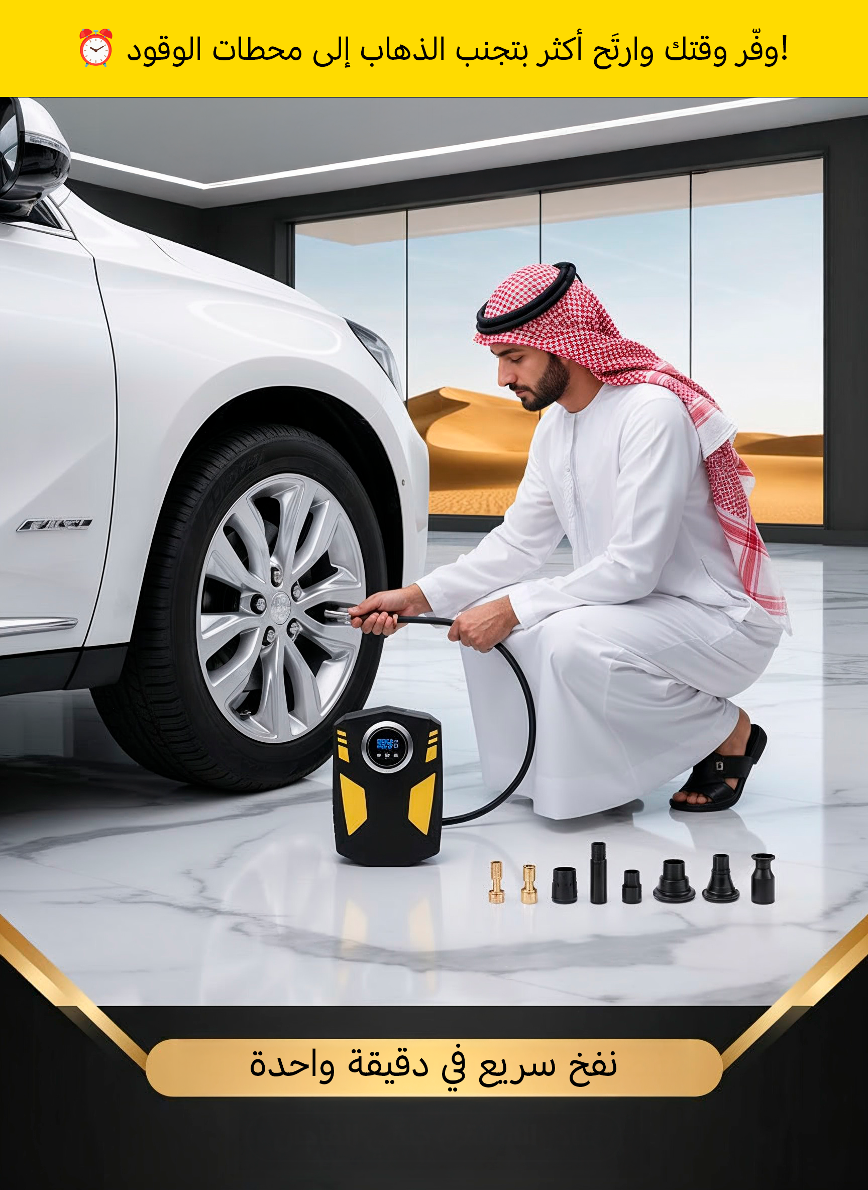 منفاخ AirCarPro™ ينفخ الكفر خلال 3–5 دقايق بس – وين ما كنت، ومن دون أي تعب.